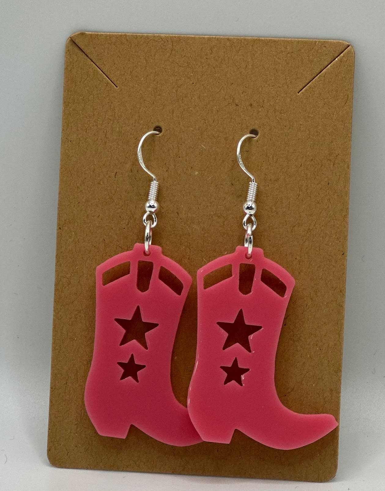 Cute baby pink cowgirl earrings. Laser cut from 1/8 acrylic.