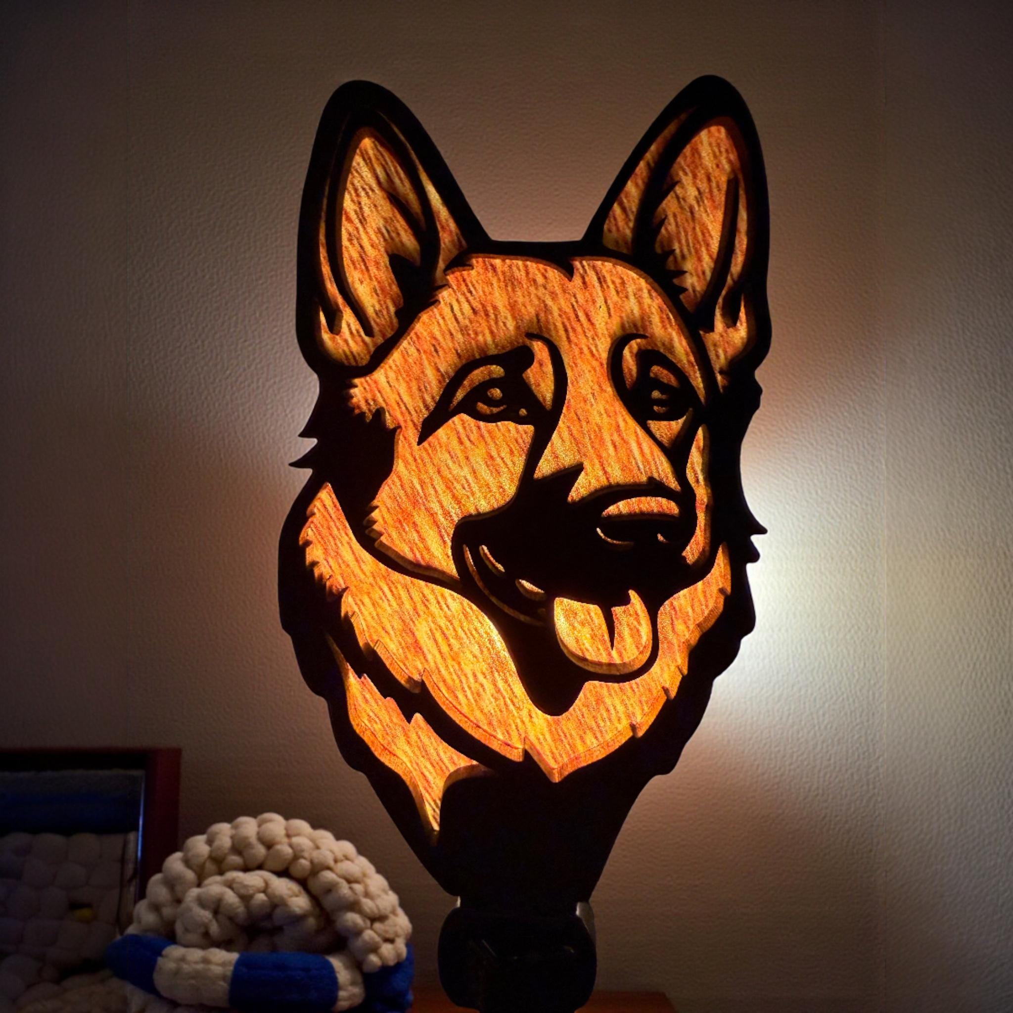 German Shepherd Handmade Wood & Acrylic Dog Night Light Dog Lover Gift