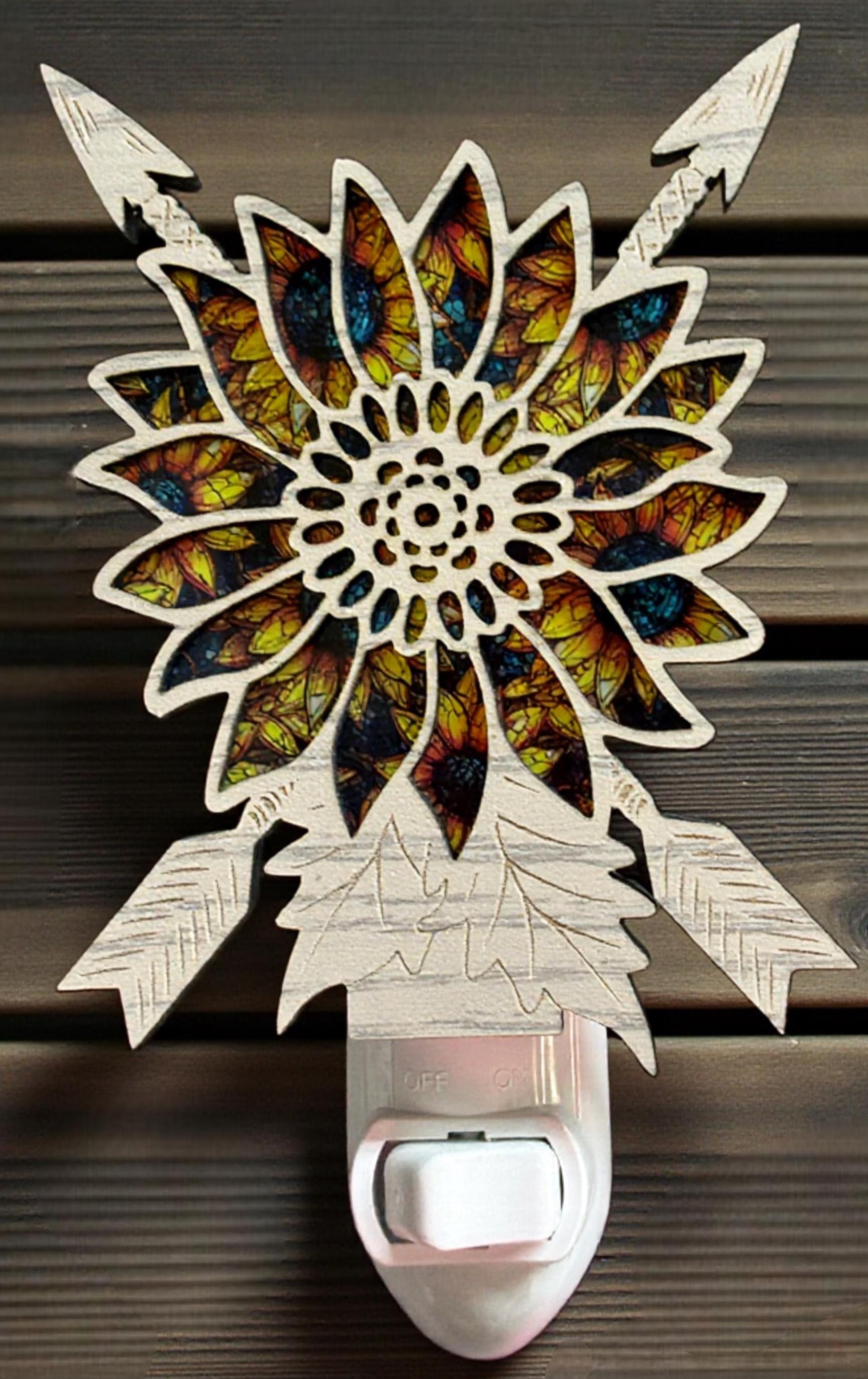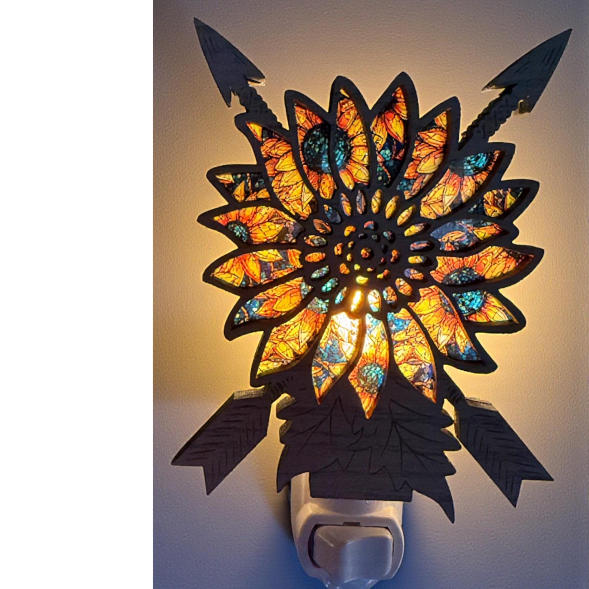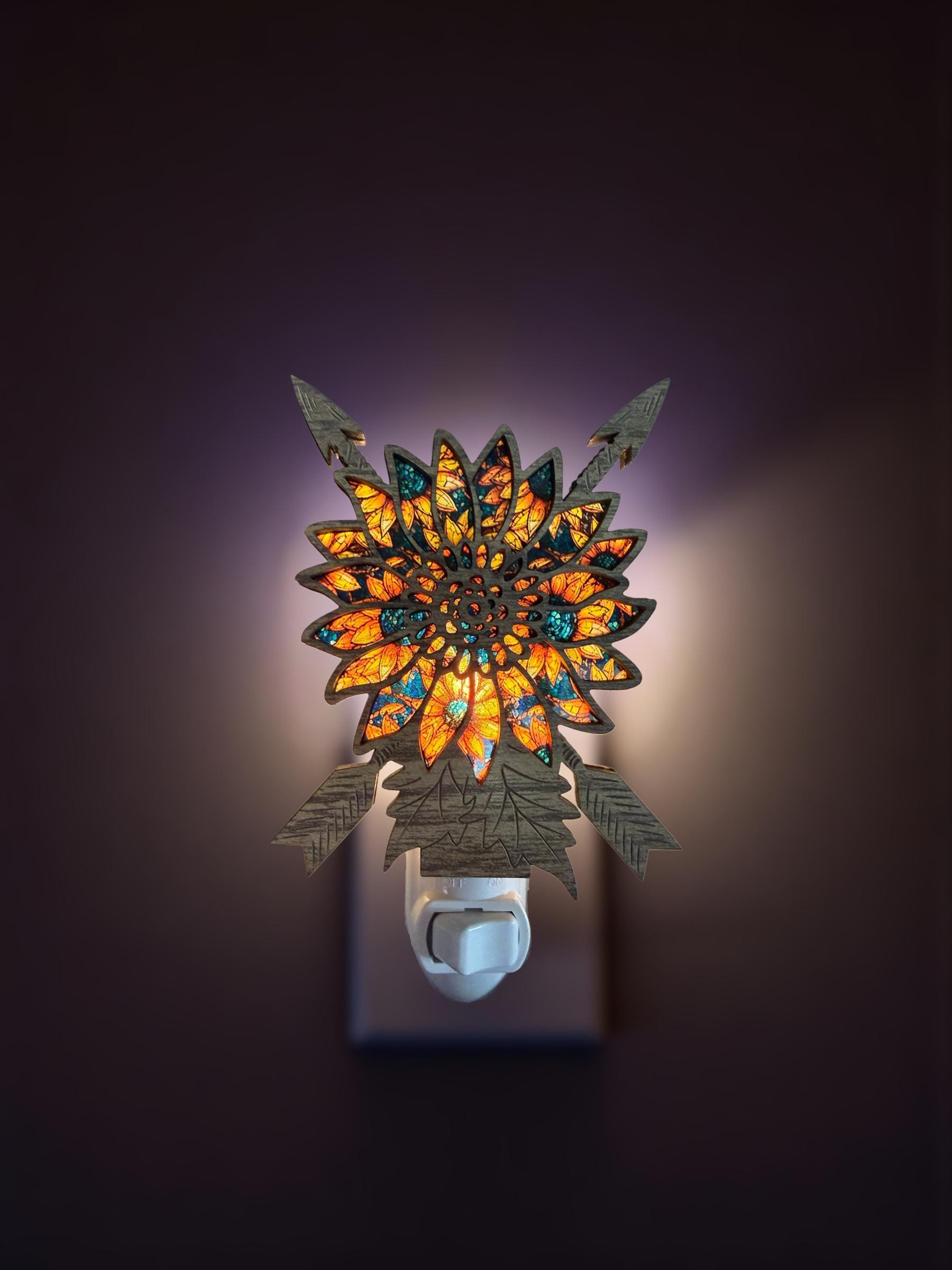 Add a soft, comforting glow to your home with this sunflower plug-in night light. The warm light shines beautifully through the sunflower design, creating a cozy, stained-glass-style effect that’s perfect for everyday use.